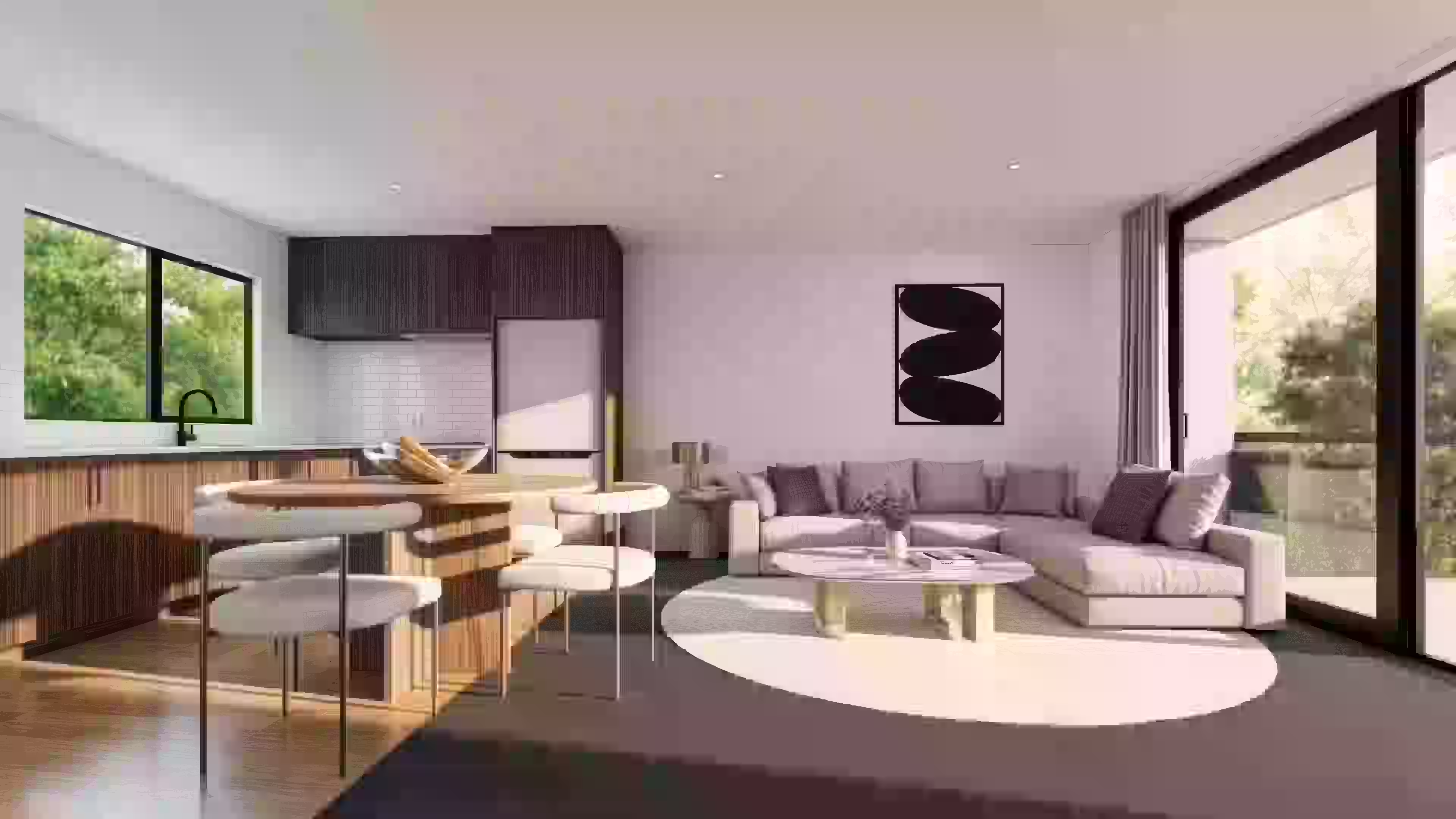 Inside, open-plan kitchen, living, and dining spaces flow seamlessly to a private courtyard, providing the perfect balance between indoor comfort and outdoor relaxation. The designer kitchen is well appointed with quality appliances, generous bench space, and ample storage, making it ideal for both daily living and entertaining. Warm timber tones, soft grey flooring, and a neutral palette add texture and balance, creating interiors that feel modern yet inviting.