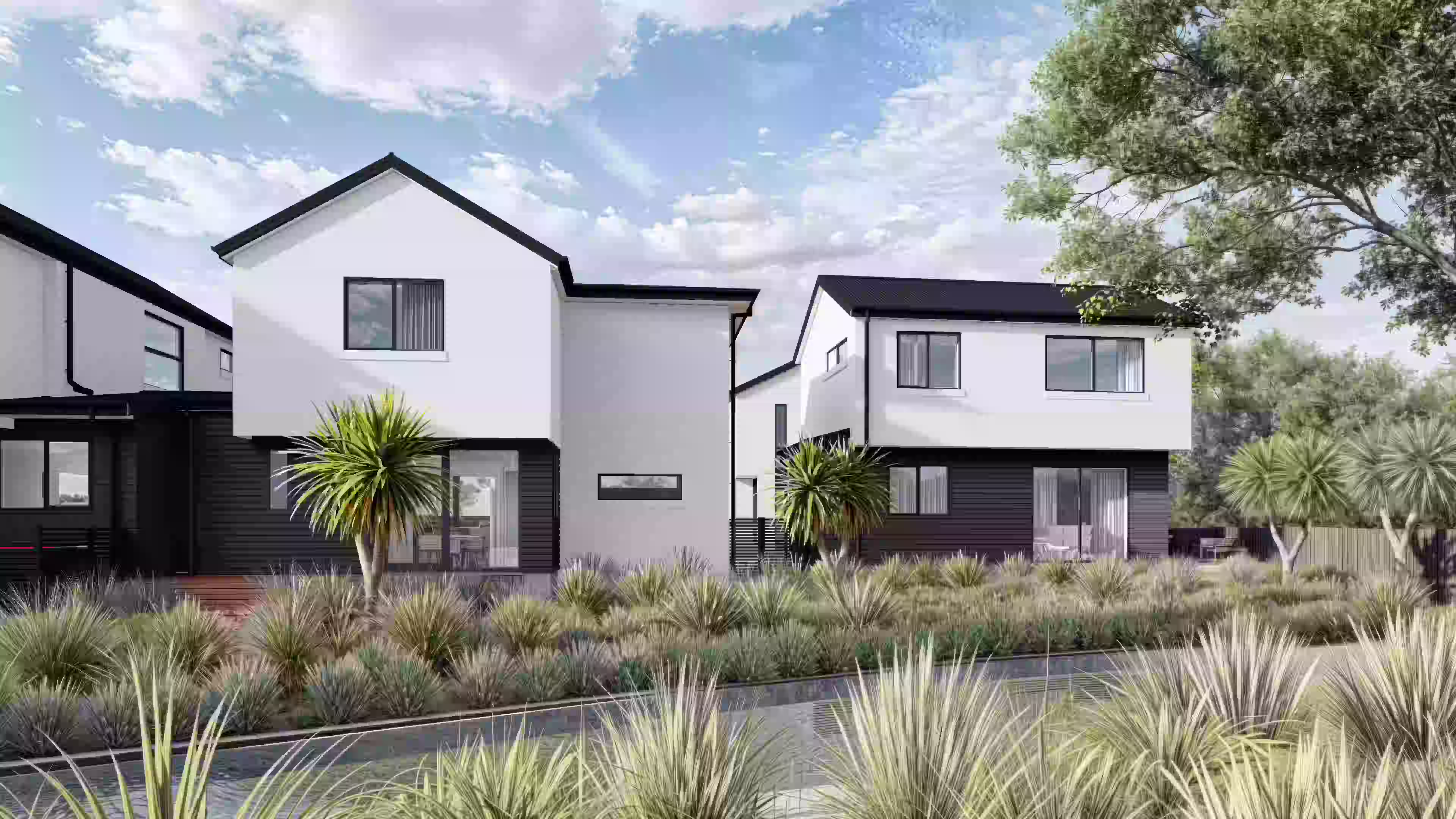 Located in a sought-after city-fringe location, 118 McFaddens Road presents a refined collection of architecturally designed townhouses that blend contemporary style with effortless everyday living. Clean lines, a striking contrast of crisp white plaster and bold black cladding, and carefully considered detailing create a timeless exterior with strong street appeal.