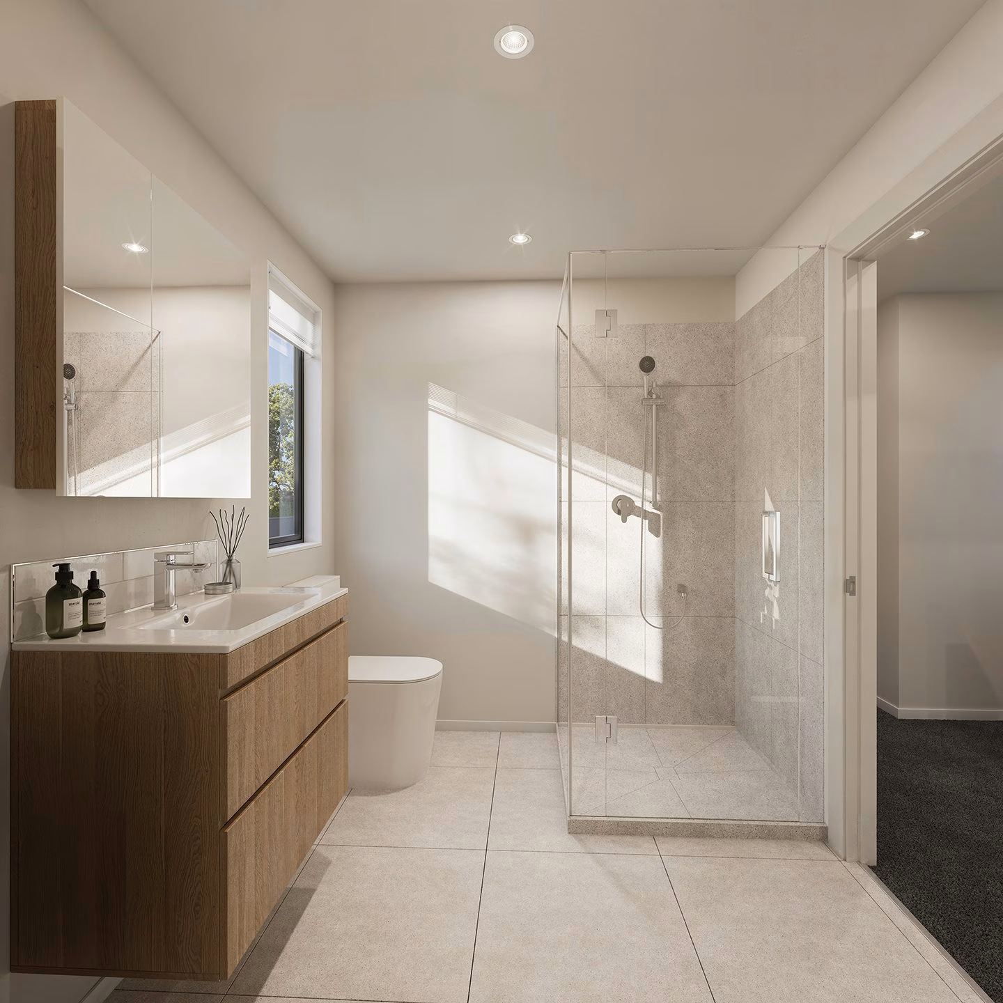 The home's first floor offers two spacious bedrooms with built-in robes, complemented by a stylish family bathroom. Three homes include an ensuite off the master bedroom for added privacy and luxury. The three-bedroom home uniquely features the master bedroom on the ground floor and a full-sized bathroom, offering flexibility and accessibility.