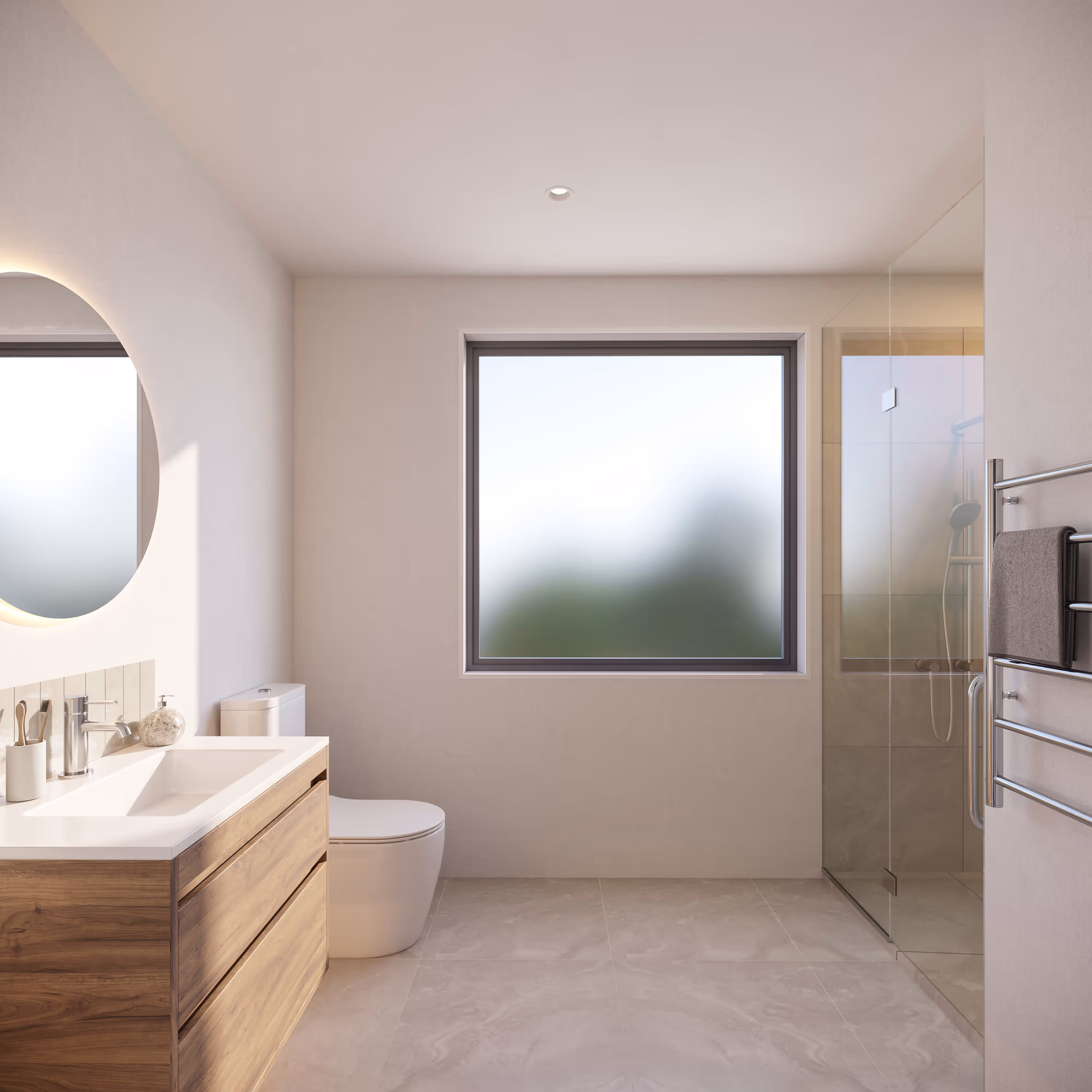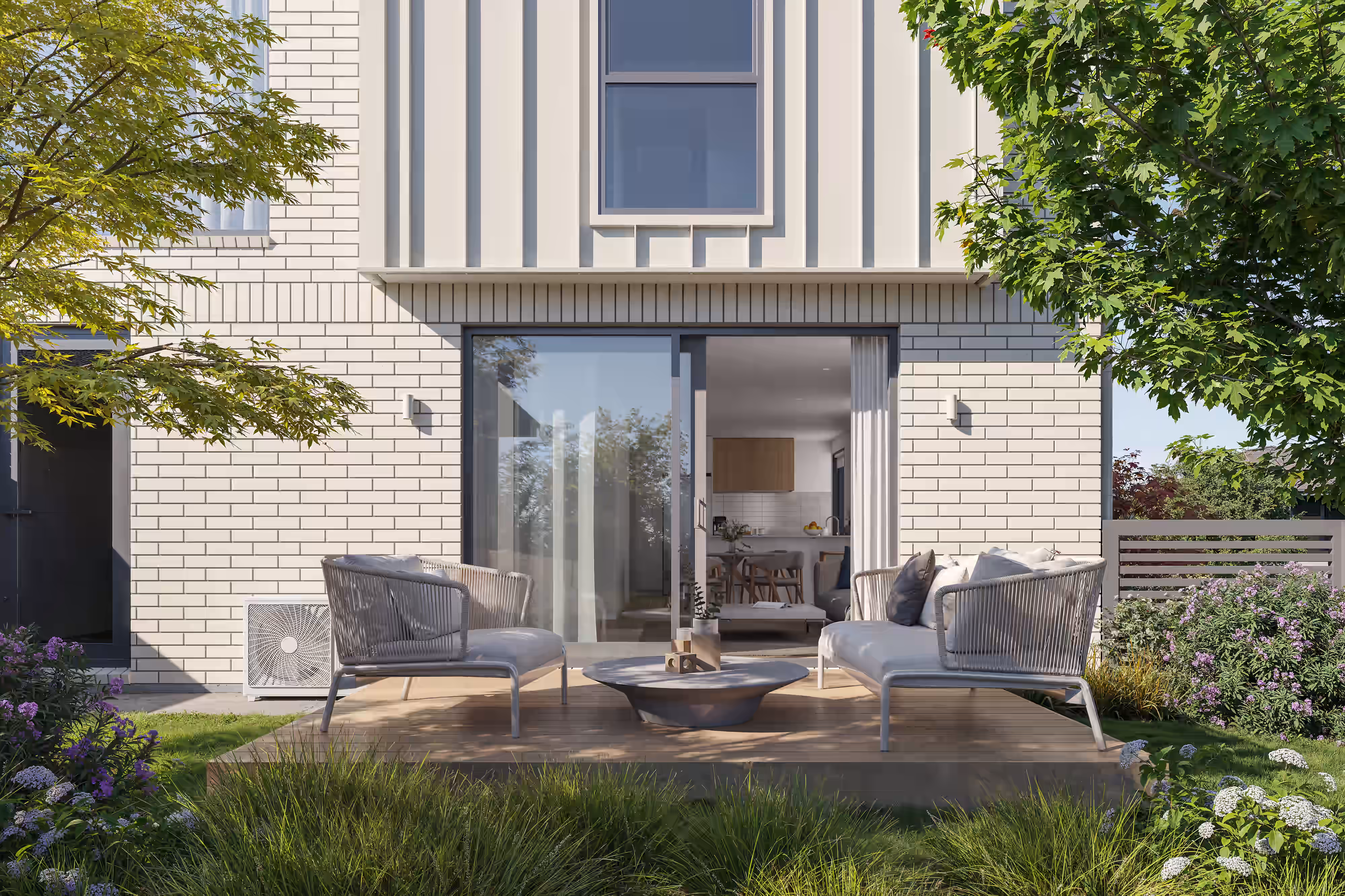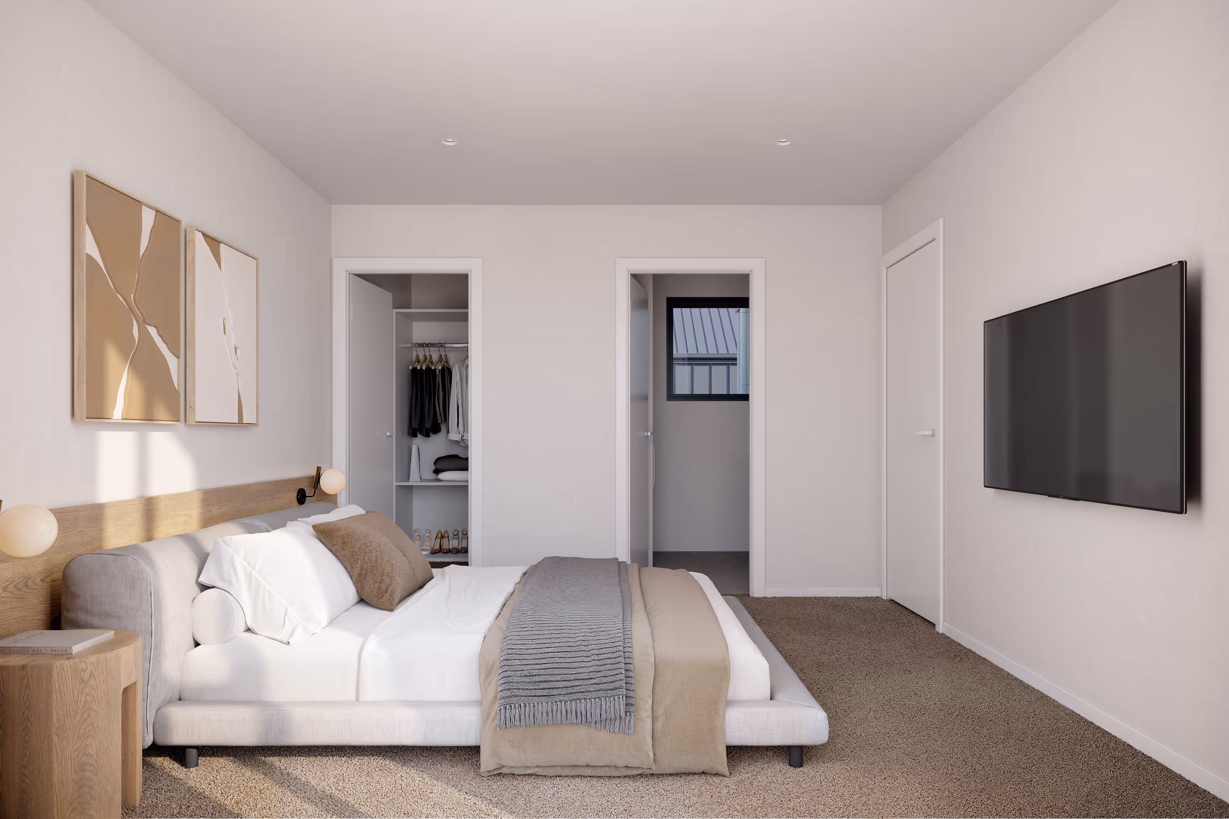 Inside, each home has been designed for modern living, with open-plan layouts that seamlessly connect kitchen, dining, and living areas. Contemporary kitchens feature durable stone benchtops and quality Fisher & Paykel appliances, while light-filled interiors and well-appointed bathrooms with tiled showers create a sense of comfort and style. Practical features such as keyless entry, heat pumps, double glazing, and internal access garaging enhance everyday ease, while private outdoor spaces provide the perfect setting for relaxing or entertaining.