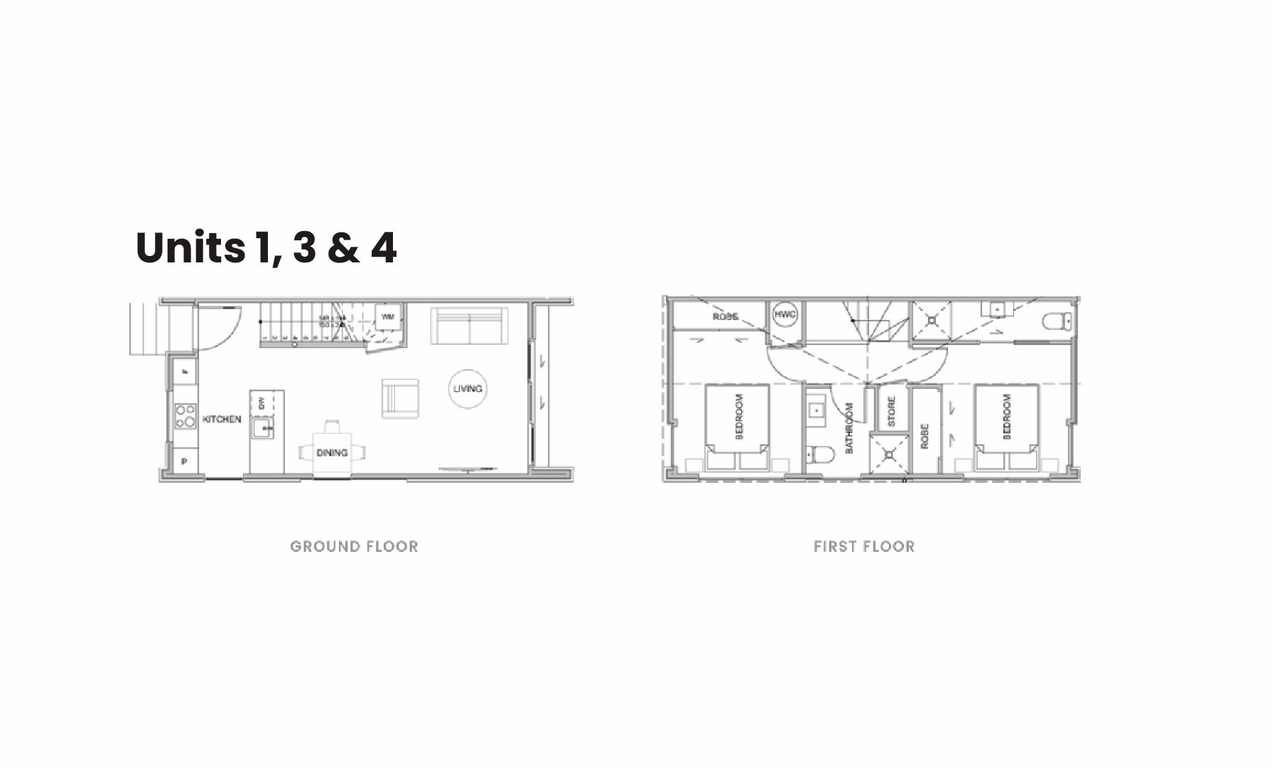 This development consists of seven townhouses with two bedrooms and one or two-bathroom options. Each townhouse features an open-plan living, dining and kitchen layout. Stepping out from the main living area, you will have your own private outdoor deck and courtyard, perfect for entertaining or relaxing.