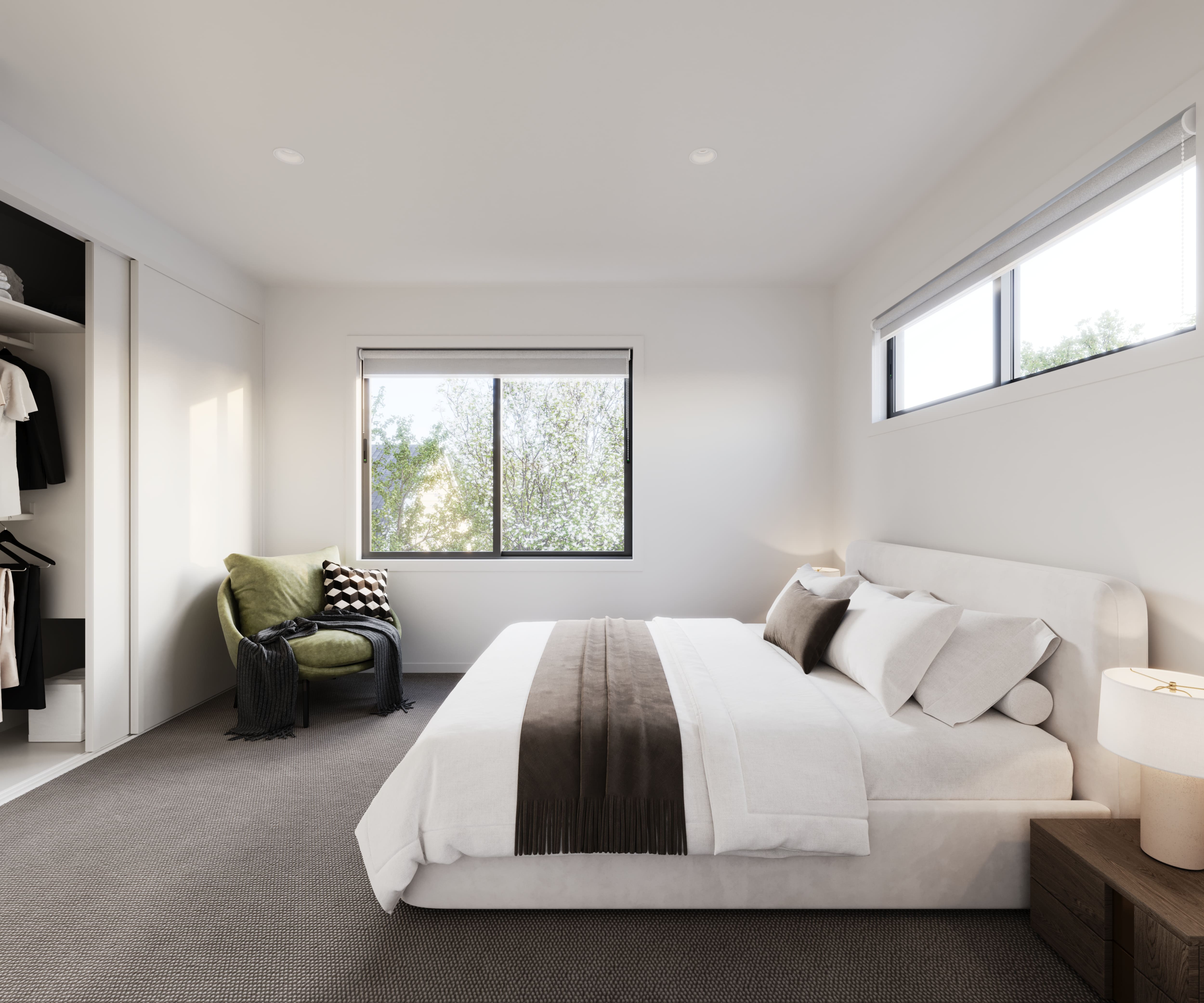 Upstairs, two well-proportioned bedrooms are complemented by two bathrooms, including a master ensuite and a separate family bathroom. Clean architectural lines, smart spatial planning, and easy-care design ensure these homes offer long-term appeal in a convenient, well-established Christchurch suburb.